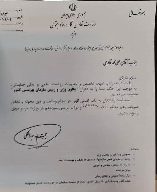 به گزارش خبرنگار جامعه یولن ؛ وزیرکار، تعاون و رفاه اجتماعی در حکمی «علی محمد قادری» را به ریاست سازمان بهزیستی کشور منصوب کرد. تا پیش از این وحید قبادی دانا ریاست سازمان بهزیستی کشور را برعهده داشت.